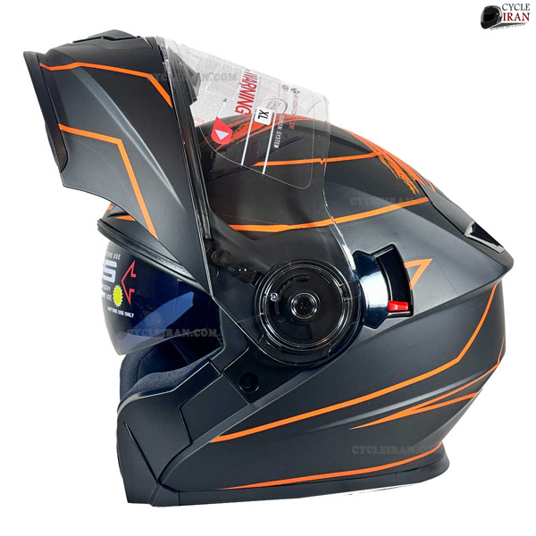 ویژگی ها : رنگ مات پارچه های داخلی قابل شستشو و تعویض دارای طلق شفاف پلی کربنات برای جلوگیری از کاهش دید راننده دارای عینک UV دودی با قابلیت جمع شدن دارای کاور پارچه ای قابلیت نصب بلوتوث داری برچسب گروه خونی