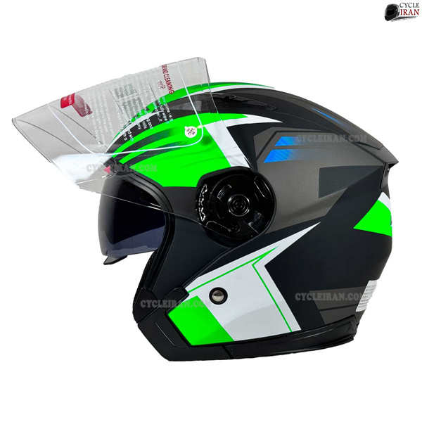 ویژگی ها : جنس: ABS (پلاستیک فشرده) _ پد و پارچه های داخلی: پلی استر، با قابلیت جداسازی و شستشو _ وزن: 890گرم _ دارای طلق شفاف پلی کربنات برای جلوگیری از کاهش دید راننده (ضد خش) _ دارای عینک دودی با قابلیت جمع شدن _ دارای کاور پارچه‌ای _ استاندارد: JSAT