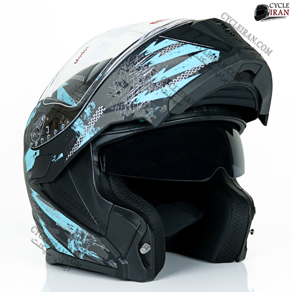 ویژگی ها : دارای پارچه های متحرک و قابل شست‌وشو _ دارای عینک دودی با قابلیت جمع شدن _ دارای کاور پارچه‌ای _ وزن: 1550 گرم _ جنس بدنه ABS _ فک متحرک _ دارای دریچه ورودی و خروجی هوا، بدون کانال کشی _ دارای استاندارد DOT - سایز لارج دور سر 59 تا 60 سایز ایکس لارج 61 تا 62 سایز دو ایکس لارج 63 و 64